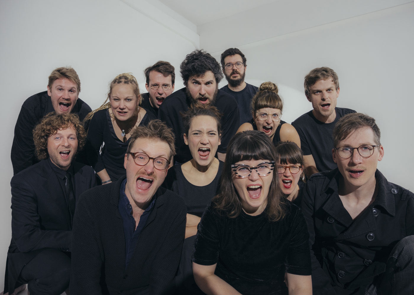 Members: Casey Moir (voice), Laurin Oppermann (voice), Conni Trieder (flute), Nicolas Schwabe (flute), Luise Volkmann (alto saxophone), Peter Ehwald (tenor saxophone), Rémi Fox (baritone saxophone), Johannes Böhmer (trumpet), Marleen Dahms (trombone), Johanna Stein (violoncello), Athina Kontou (bass), Yannick Lestra (keyboard, electronics), Paul Jarret (guitar), Max Santner (drums)